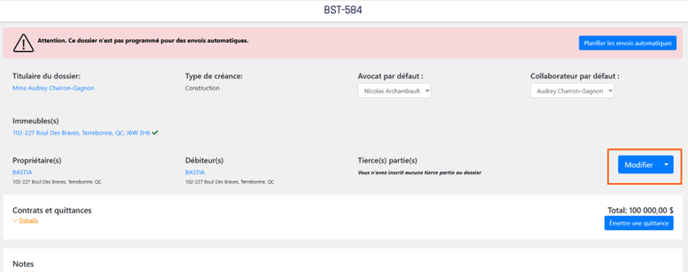 Ces ajouts doivent être inscrits dans le dossier pour que nos employés disposent des bonnes informations lors de la préparation d’un avis d’hypothèque légale ou d’un préavis d’exercice.