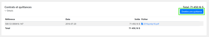Dans la section du dossier nommée «Contrats et quittances», cliquez sur «Émettre une quittance»: