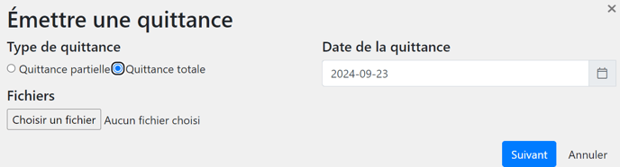 - Date de la quittance : Préciser la date qui apparaîtra sur la quittance