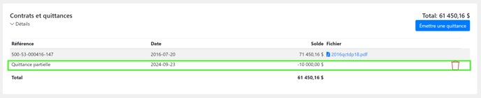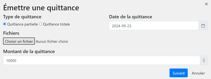 Saisissez les informations suivantes:- Type de quittance : Quittance partielle